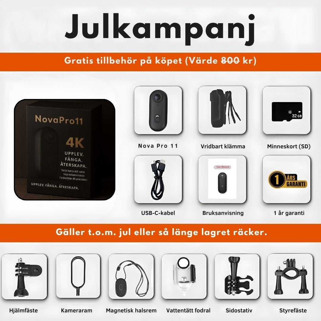 Ja. NovaPro11 spelar in äkta, kristallklar 4K-video. Resultatet blir professionell kvalitet som ser fantastiskt ut på mobil, surfplatta och stora skärmar.